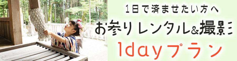 撮影とお参りを同じ日にされたい方は1dayプランがおすすめ!主役様の七五三撮影とお参りレンタルがパックになっています。家族やご兄弟の撮影も追加(有料)できます。
